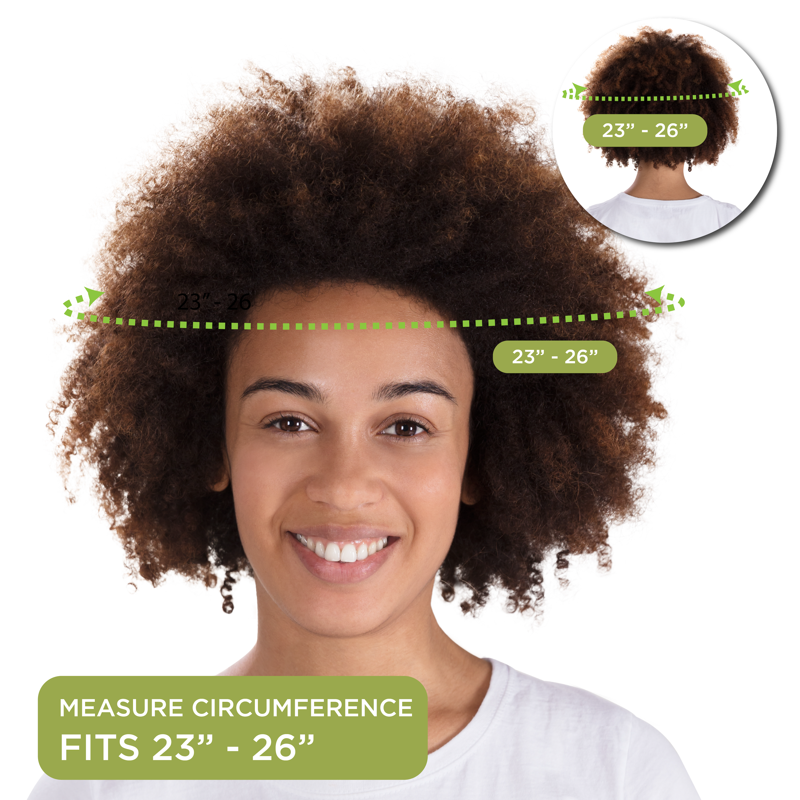 Adjustable & Oversized for head/hair 23” - 26” circumference