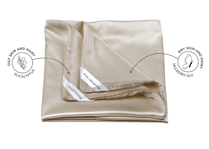 Hydrating silk for dry skin and wicking eucalyptus for oily skin—this reversible pillowcase adapts to your skin's needs.