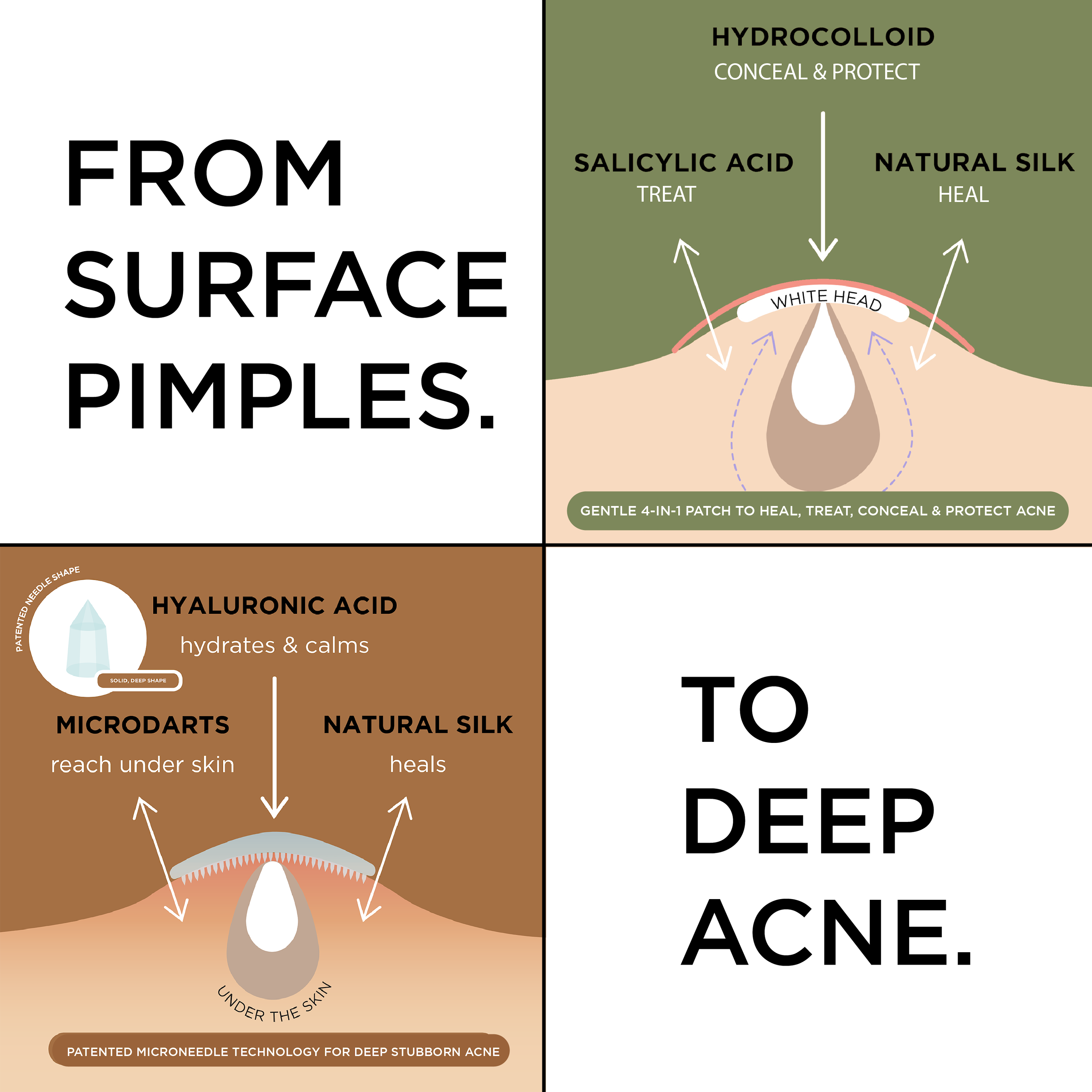 - Custom care: Two patch types in one pack smooth Everyday for surface spots, micro-dotted Advanced for deeper breakouts.