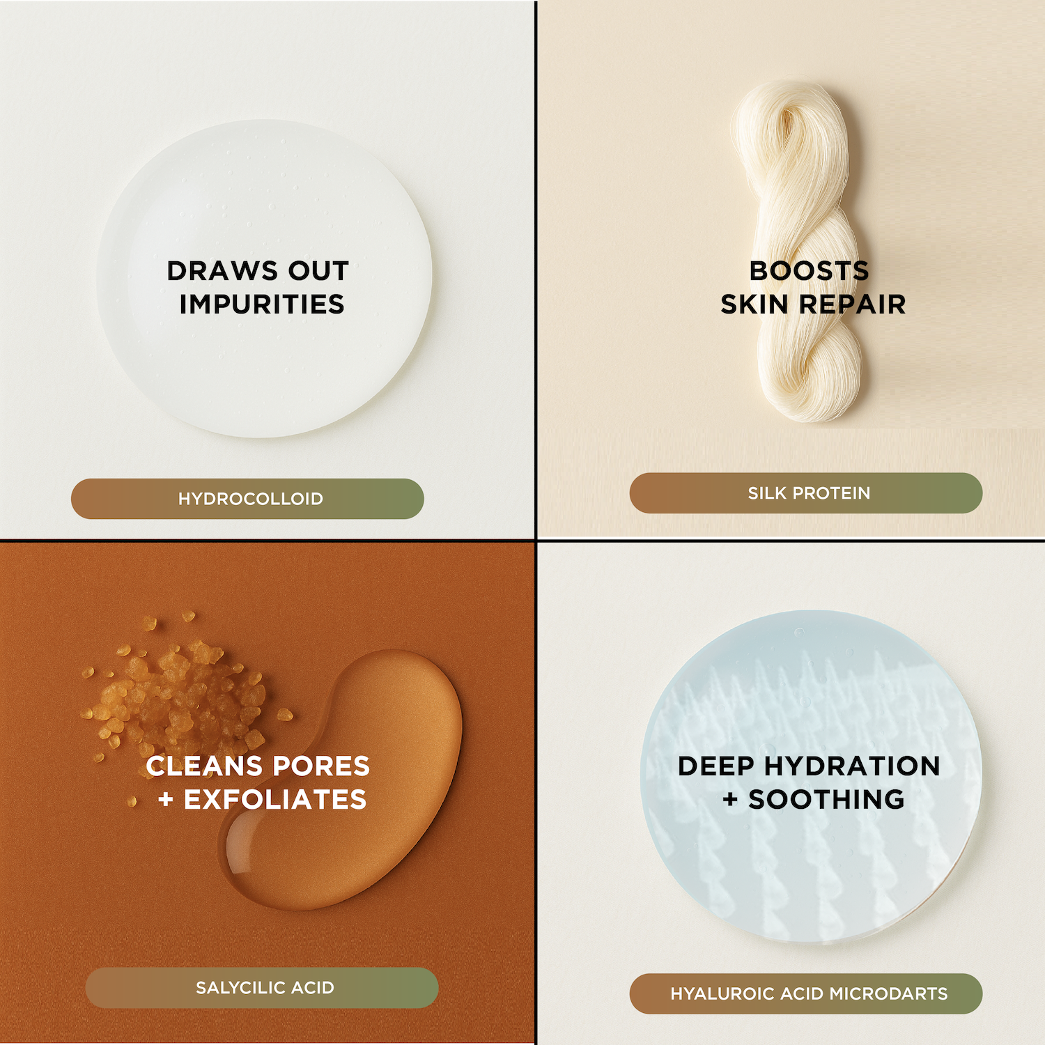 - Fast, visible results: Hydrocolloid technology absorbs impurities overnight and flattens blemishes by morning.