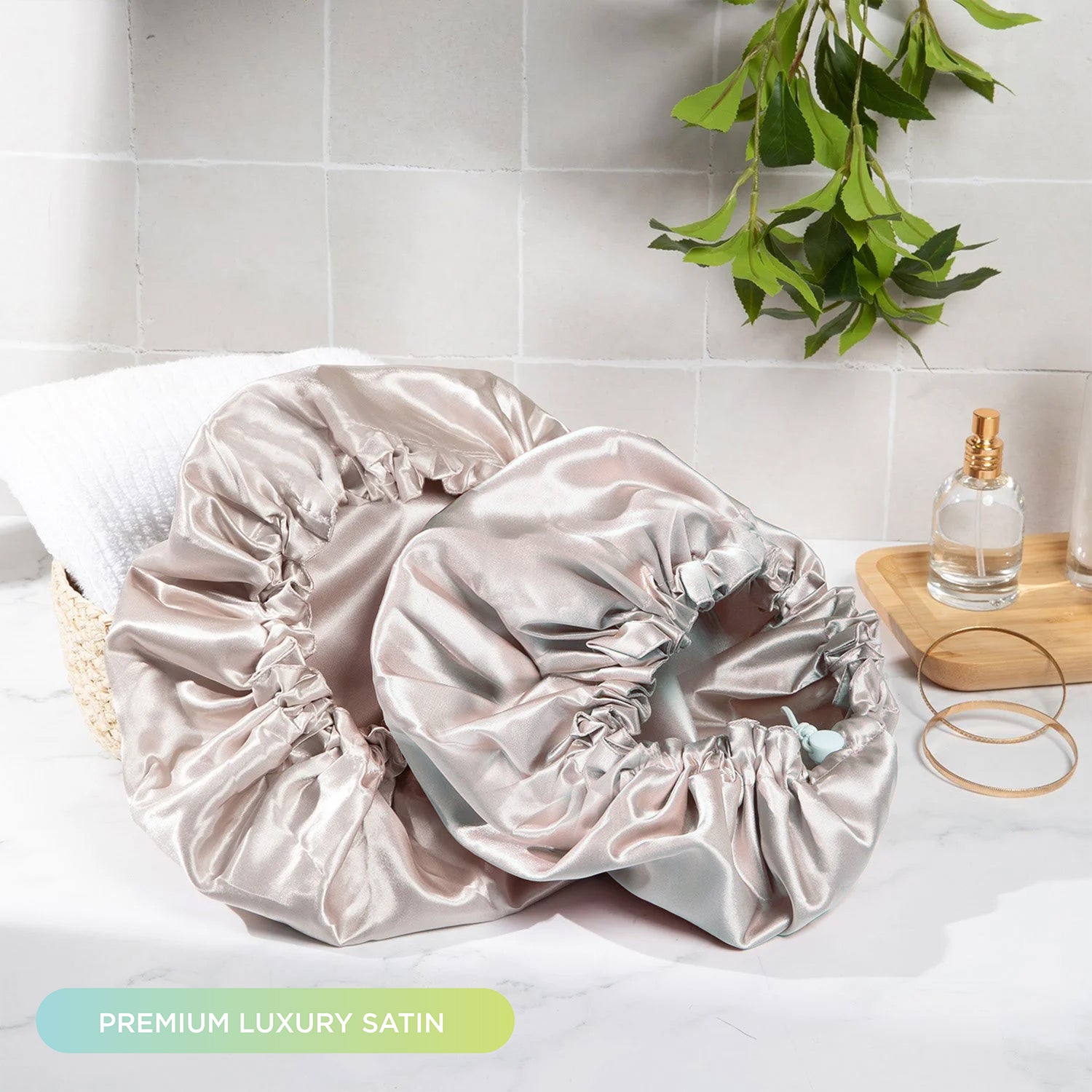 Includes your choice of 1 or 2 Luxury Satin Shower & Sleep Caps