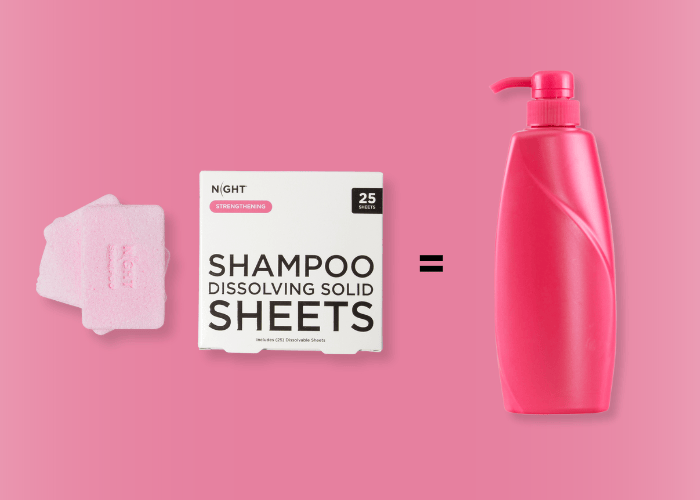 Pocket-sized shampoo sheets. Just add water—no mess, no waste. Clean ingredients for effortless, on-the-go haircare.